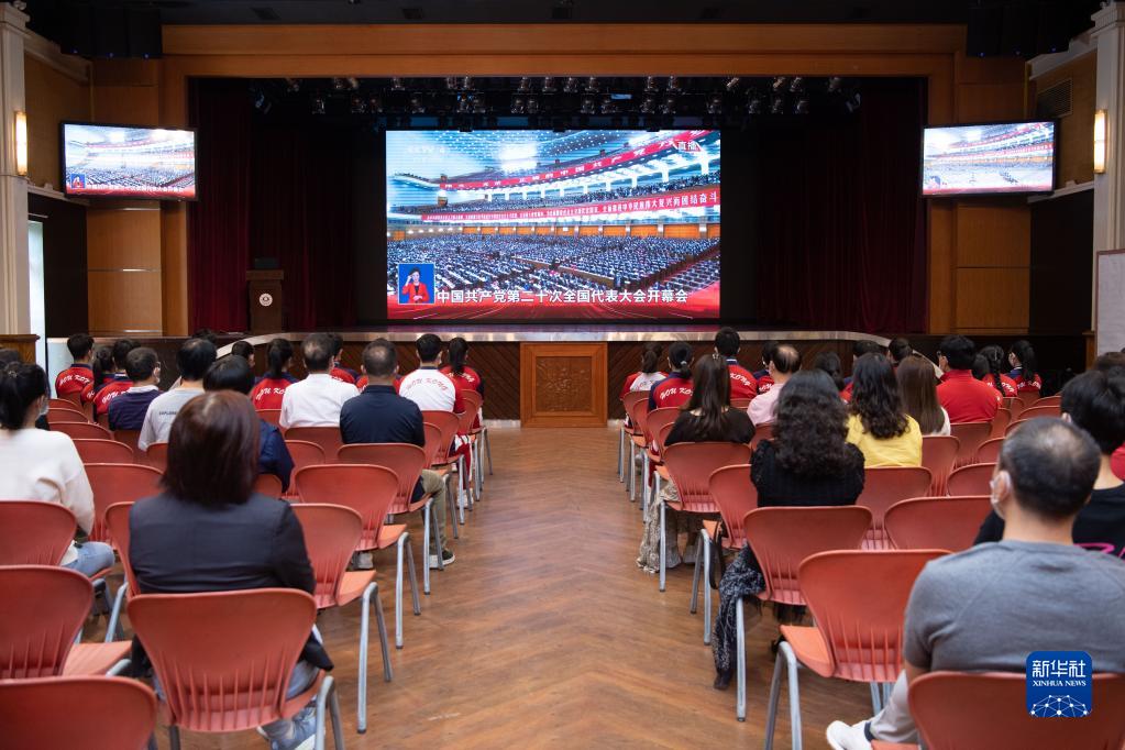 10月16日,在澳門(mén)濠江中學(xué)禮堂,師生收看中國共產(chǎn)黨第二十次全國代表大會(huì )開(kāi)幕會(huì )。