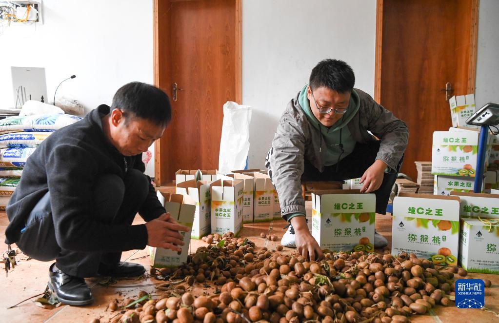 10月14日,山王坪鎮廟壩村村民在分揀、包裝野生獼猴桃。