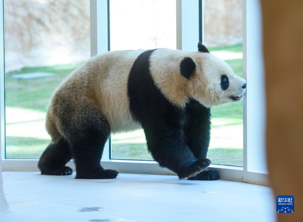 10月19日,大熊貓走在位于卡塔爾首都多哈的豪爾熊貓館內。新華社發(fā)(尼庫攝)
