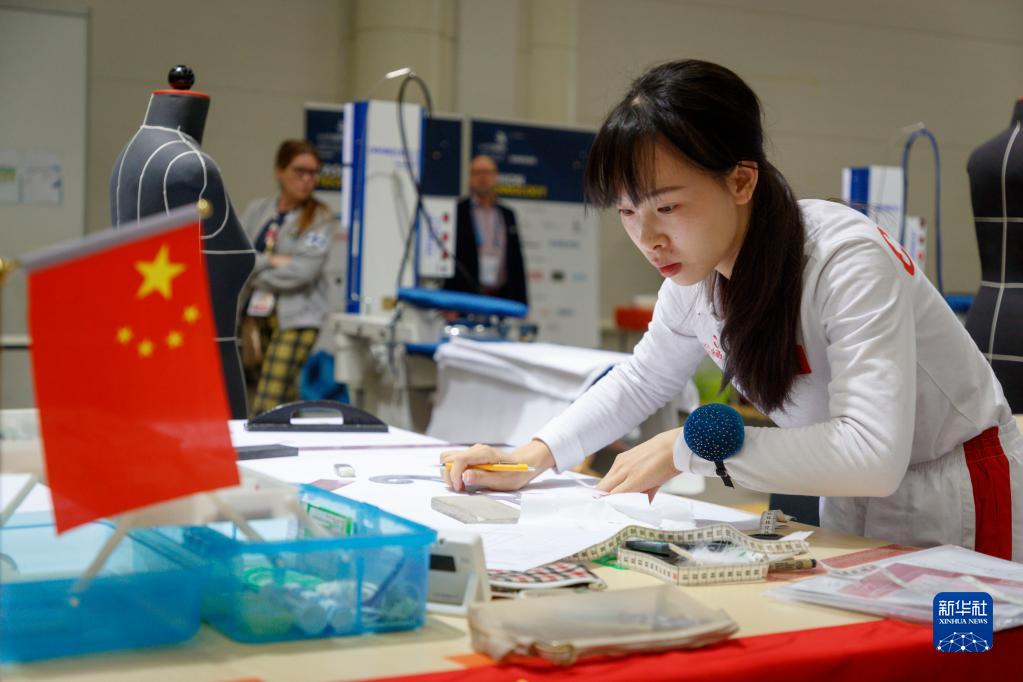 10月20日,湖南工藝美術(shù)職業(yè)學(xué)院董青在芬蘭首都赫爾辛基參加2022年世界技能大賽特別賽芬蘭賽區比賽時(shí)裝技術(shù)項目。新華社發(fā)(卡勒·帕爾基寧攝)