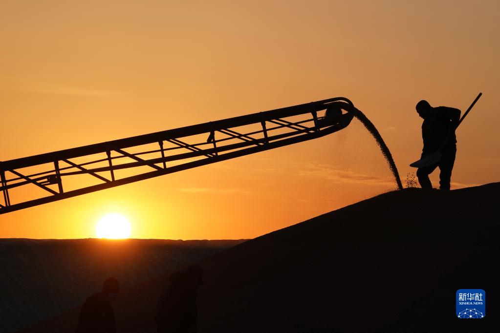 10月20日,在北大荒農墾集團有限公司北安分公司趙光農場(chǎng)有限公司,工作人員在一處曬場(chǎng)的玉米堆上忙碌。