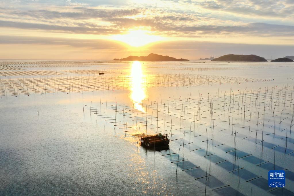 金秋十月,福建省寧德市霞浦縣6.5萬(wàn)畝海上養殖紫菜迎來(lái)收獲時(shí)節,漁民們操作收割船在大海中采收頭水紫菜,展開(kāi)一幅海上秋收畫(huà)卷。霞浦縣素有“中國紫菜之鄉”美譽(yù),形成紫菜育苗、種植、加工全產(chǎn)業(yè)鏈條,年產(chǎn)值近10億元。紫菜成為當地群眾增收致富的支柱產(chǎn)業(yè)。