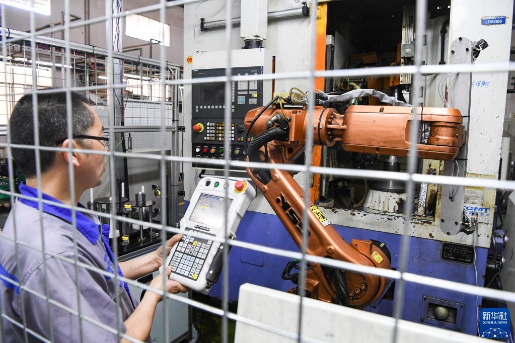10月19日,在位于重慶市璧山區的重慶藍黛變速器有限公司,工人在生產(chǎn)車(chē)間作業(yè)。