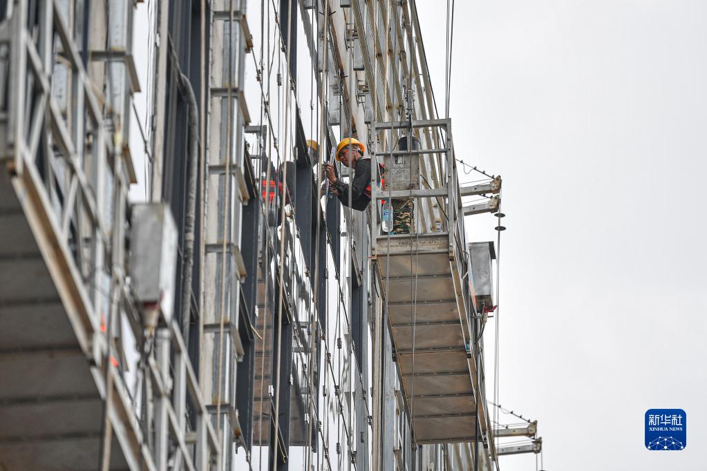 10月21日,工人在海南東方臨港產(chǎn)業(yè)園東方明陽(yáng)新能源高端裝備產(chǎn)業(yè)基地項目工地施工。