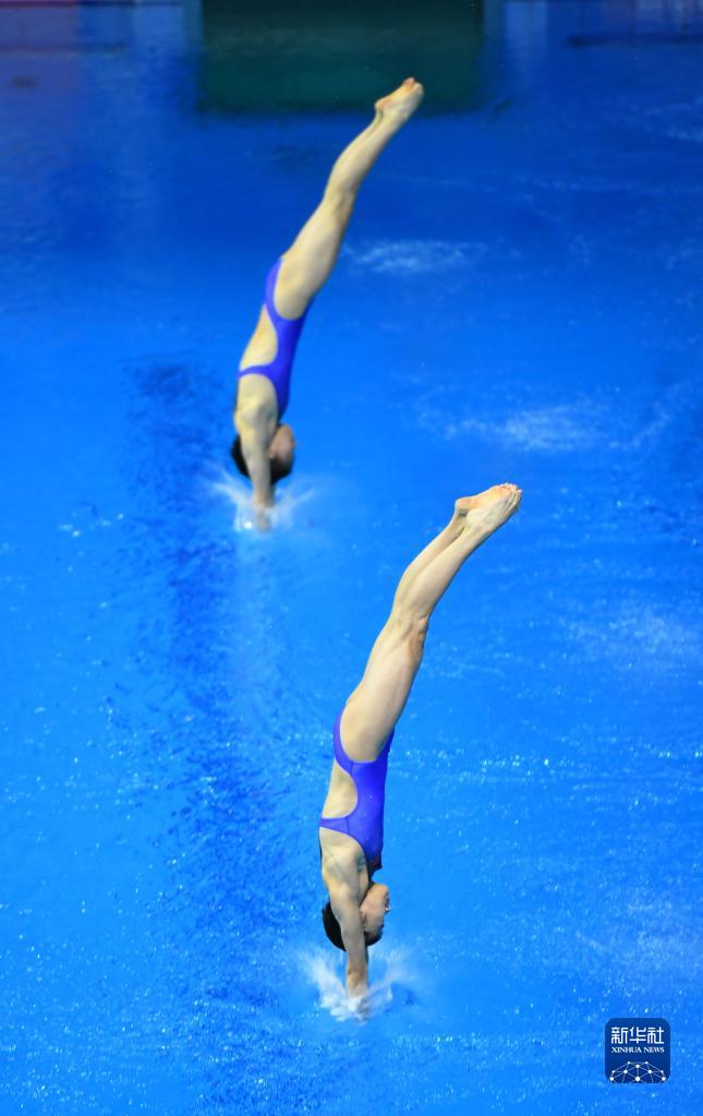 10月21日,陳芋汐/全紅嬋(前)在比賽中。