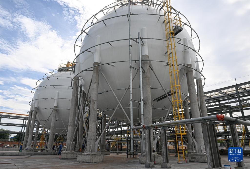 這是10月22日在海南東方臨港產(chǎn)業(yè)園拍攝的海南精細化工二期工程丙烯腈系列裝置項目。