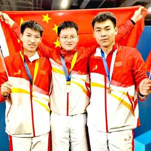 10月15日,在瑞士巴塞爾,獲得2022年世界技能大賽特別賽精細木工項目金牌的中國選手邵茹鵬(左)、獲得家具制作項目金牌的中國選手李德鑫(中)和獲得木工項目?jì)?yōu)勝獎的中國選手王縱橫在頒獎儀式后合影(手機拍攝)。