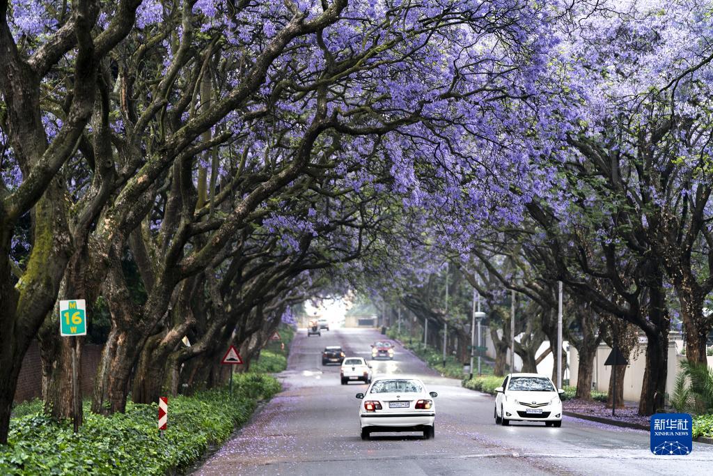 這是10月24日在南非約翰內斯堡拍攝的盛開(kāi)的藍花楹。