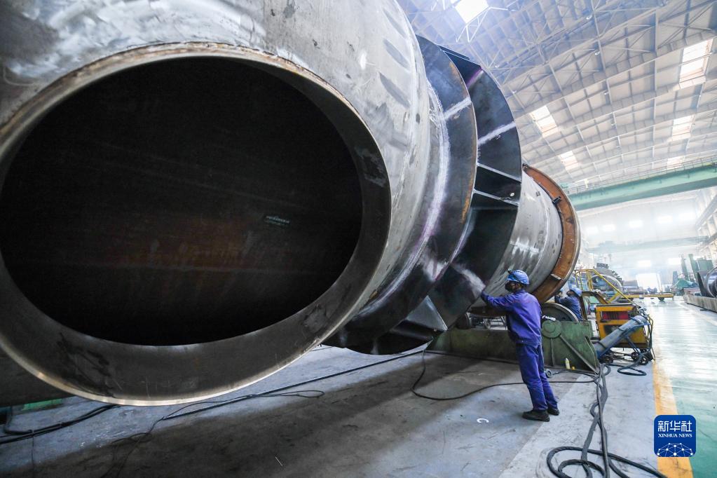 在哈電集團哈爾濱鍋爐廠(chǎng)有限責任公司的生產(chǎn)車(chē)間,工人在生產(chǎn)作業(yè)(10月24日攝)。