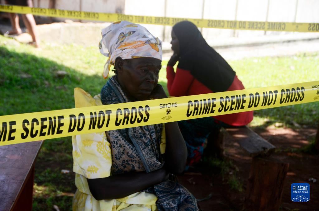10月25日,在烏干達中部穆科諾地區一所盲人學(xué)校,一名婦女在被封鎖的火災現場(chǎng)哭泣。