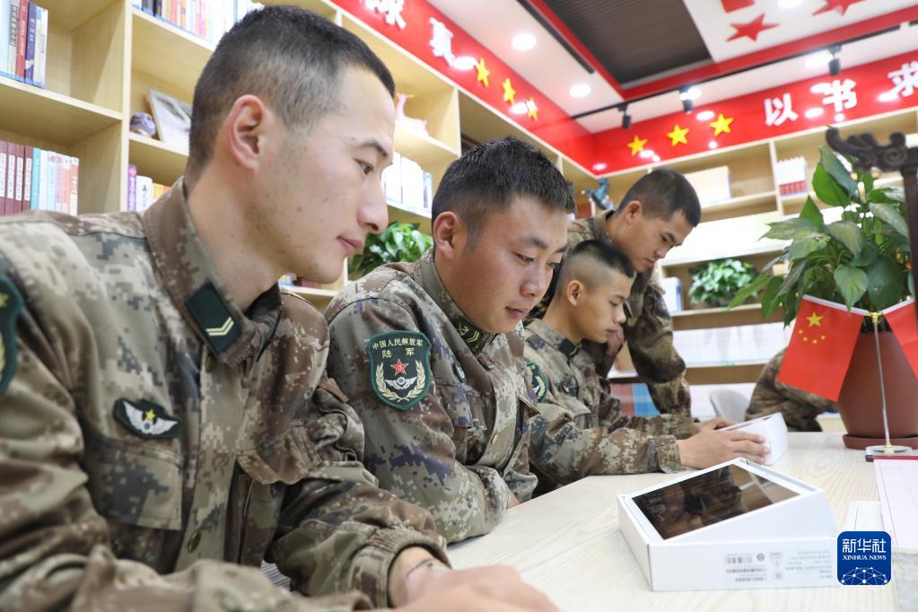 中共中央總書(shū)記、國家主席、中央軍委主席習近平24日下午出席軍隊領(lǐng)導干部會(huì )議時(shí)發(fā)表的重要講話(huà),在解放軍和武警部隊引起強烈反響。這是新疆軍區奧爾托蘇邊防連官兵在圖書(shū)室認真學(xué)習習主席重要講話(huà)(10月25日攝)。新華社發(fā)(劉南松 攝)