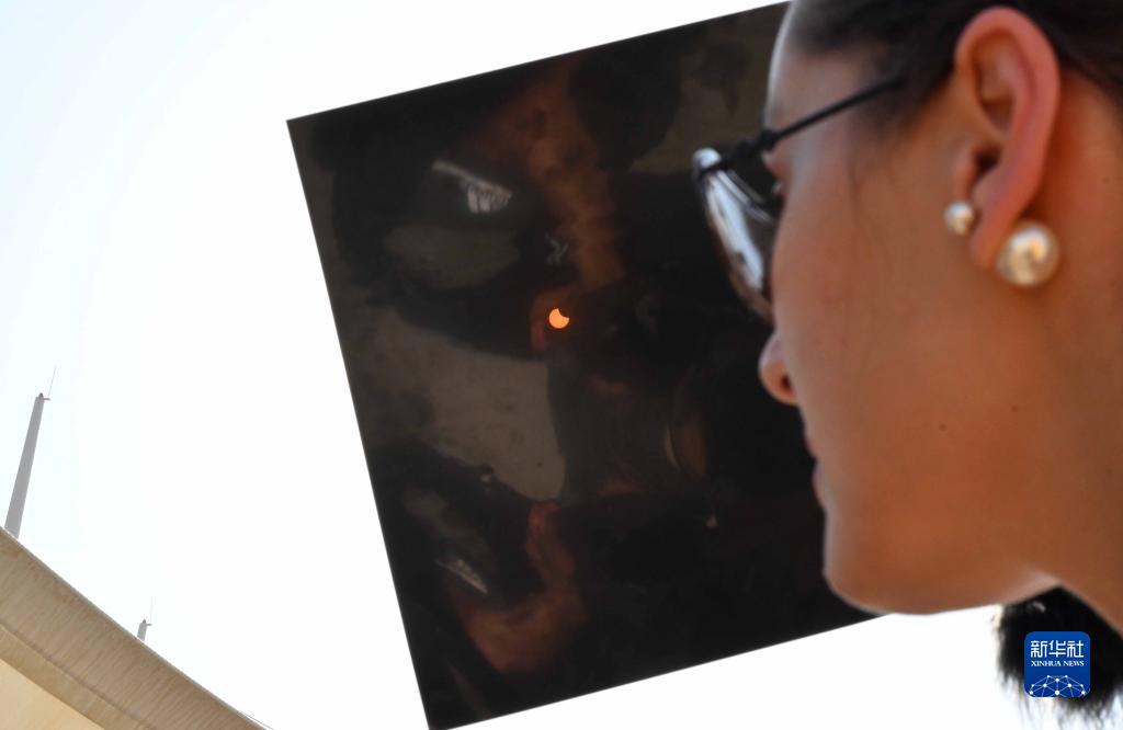 10月25日,一名女子在科威特哈瓦利省觀(guān)看日偏食。