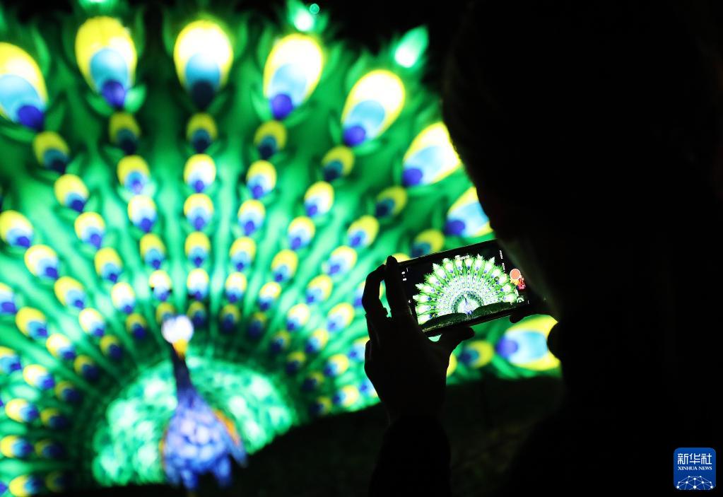 10月26日,參觀(guān)者在法國圖瓦里動(dòng)物園燈展媒體預展上拍照。