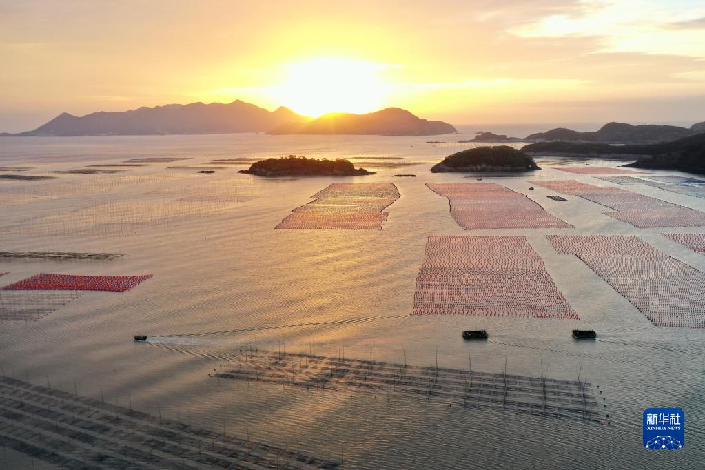 金秋時(shí)節,福建省海洋養殖大縣霞浦縣海域上一派繁忙的秋收景象。每天的早晨和傍晚是漁民出海勞作、歸港返家的繁忙時(shí)段,漁船在廣闊的海洋牧場(chǎng)里穿行游弋,收獲紫菜、生蠔等水產(chǎn)品,描繪出一幅幅美麗的大海漁耕圖。