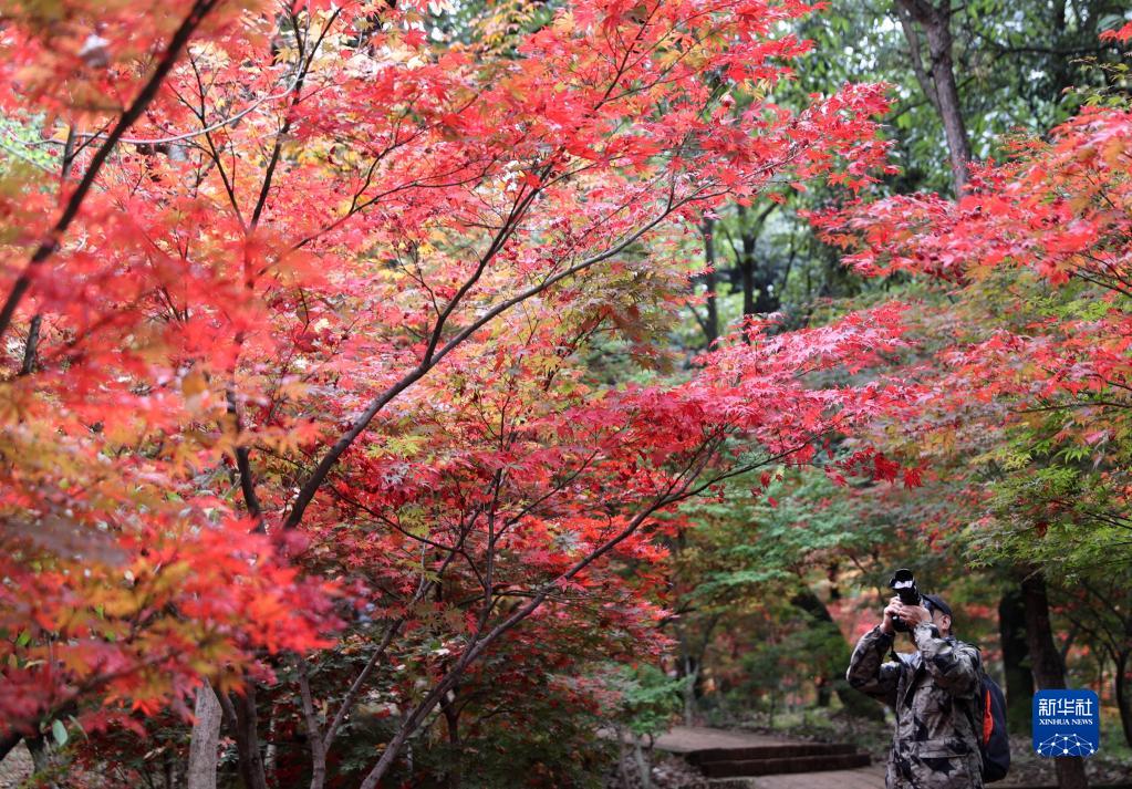 10月28日,市民在云南昆明黑龍潭公園楓葉區賞景拍照。