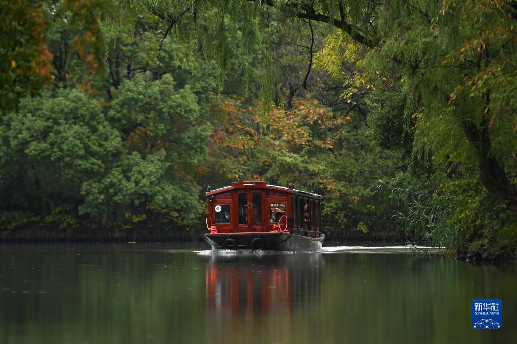10月28日,游客乘坐電瓶船在西溪國家濕地公園觀(guān)光。