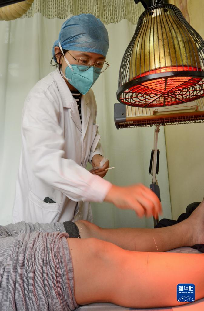 北京市豐臺區馬家堡社區衛生服務(wù)中心的醫生在為社區群眾提供中醫針灸服務(wù)(10月26日攝)。