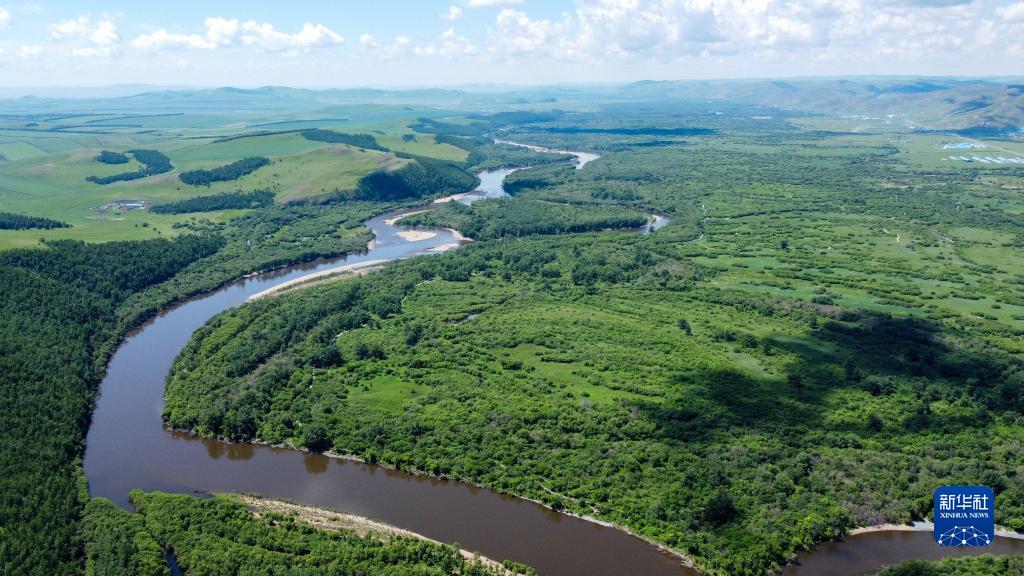 6月27日拍攝的額爾古納濕地風(fēng)光(無(wú)人機照片)。