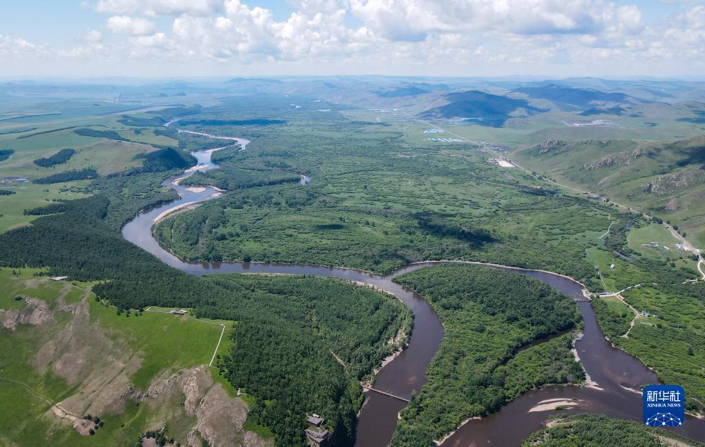 6月27日拍攝的額爾古納濕地風(fēng)光(無(wú)人機照片)。