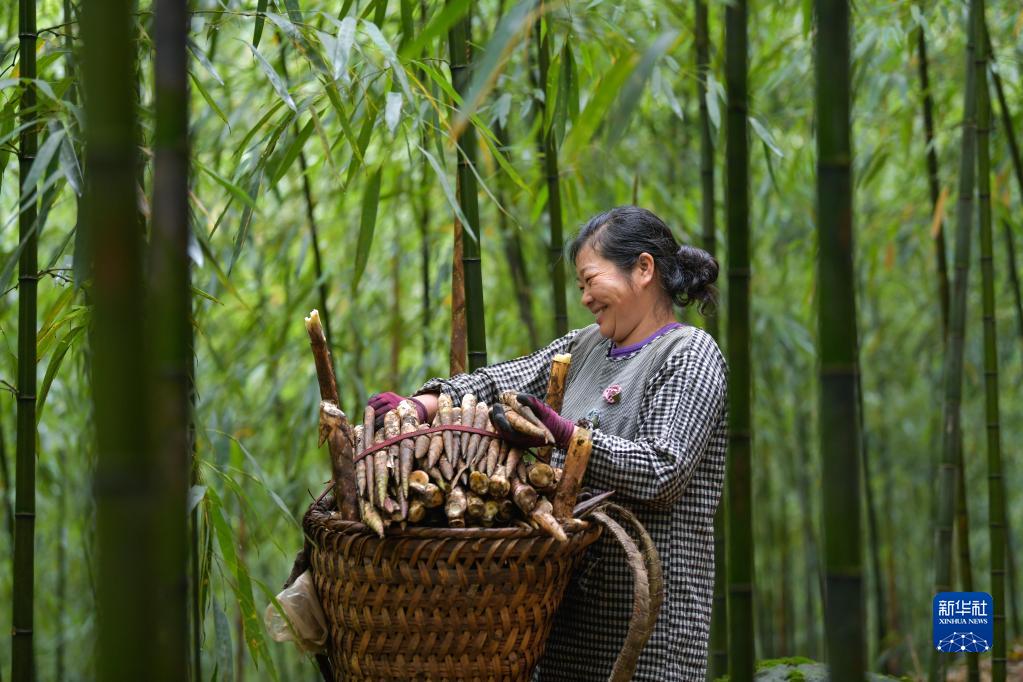 10月27日,在貴州省赤水市寶源鄉聯(lián)華村,農民收獲大竹筍。