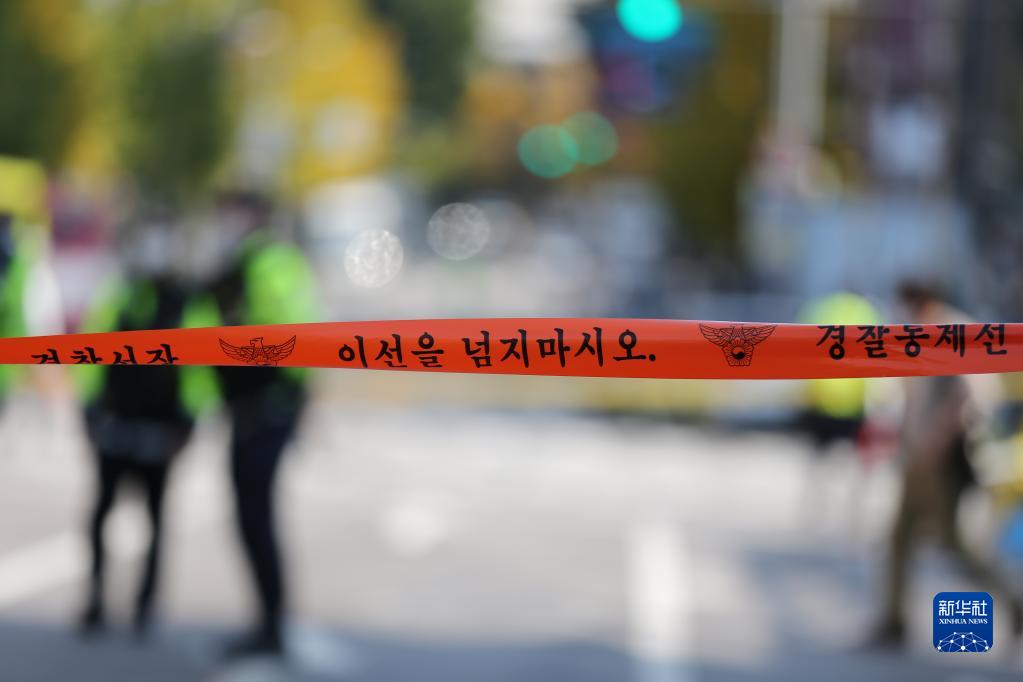 這是10月30日在韓國首爾踩踏事故現場(chǎng)拍攝的警戒線(xiàn)。