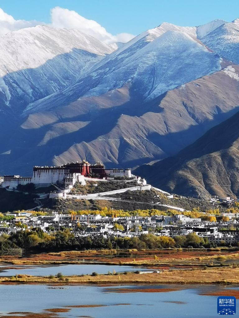 這是從拉魯濕地方向拍攝的布達拉宮(10月29日攝)。