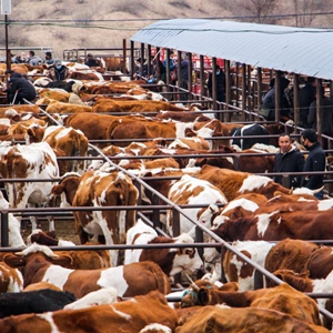 當日,內蒙古通遼市科爾沁左翼后旗伊胡塔牛市迎來(lái)交易日,來(lái)自遼寧、吉林、河北、山東等地的買(mǎi)家和經(jīng)紀人云集牛市。伊胡塔牛市年交易牛頭數超50萬(wàn)頭,交易日均成交5000余頭,年交易額超50億元。近年來(lái),在做好疫情防控的前提下,當地穩步發(fā)展肉牛產(chǎn)業(yè),養牛已經(jīng)成為當地農牧民增收致富的主要途徑之一。