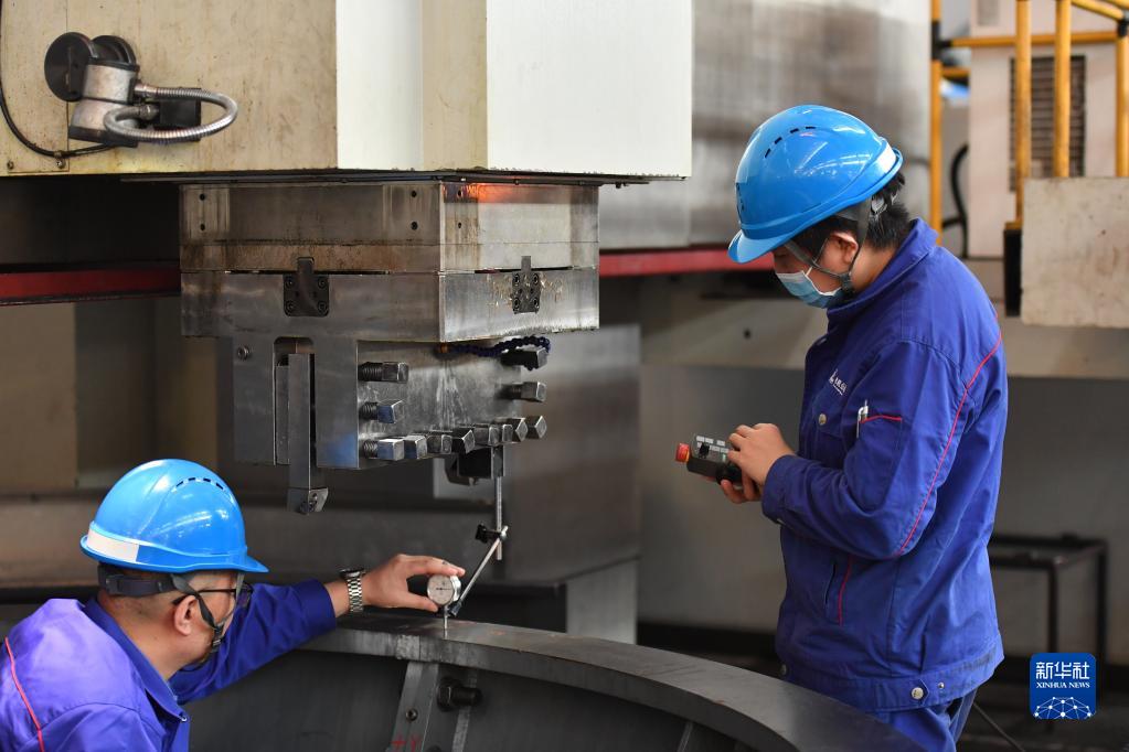 10月30日,在哈電集團哈爾濱電機廠(chǎng)有限責任公司的生產(chǎn)車(chē)間,工人在進(jìn)行生產(chǎn)作業(yè)。