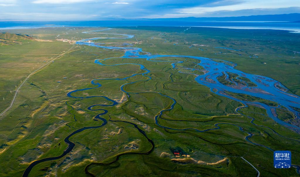 這是青海湖布哈河濕地一景(2020年7月19日攝,無(wú)人機照片)。