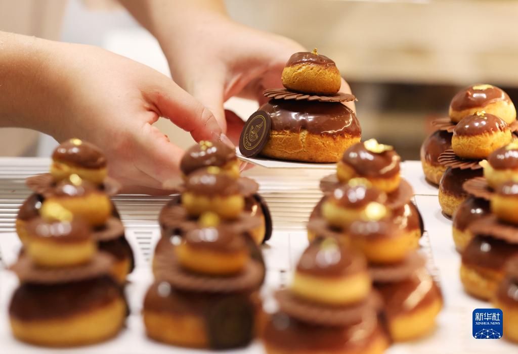 10月31日,工作人員在法國巴黎巧克力沙龍上展示巧克力甜點(diǎn)。