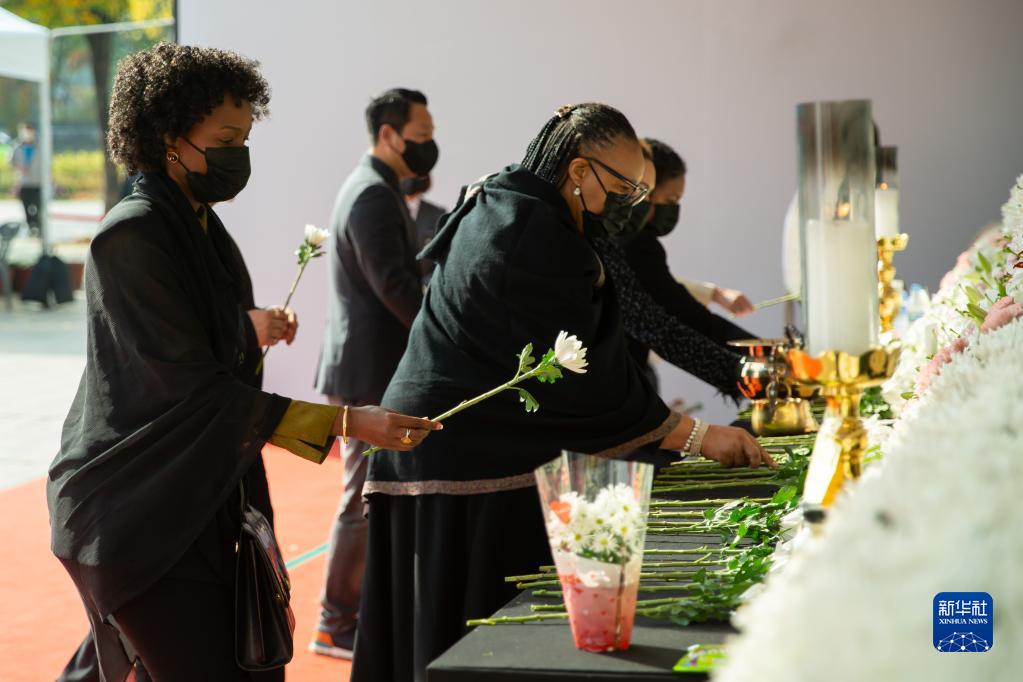 11月1日,民眾走進(jìn)設在韓國首爾廣場(chǎng)首爾圖書(shū)館正門(mén)前的集體焚香所,為遇難者獻花默哀。
