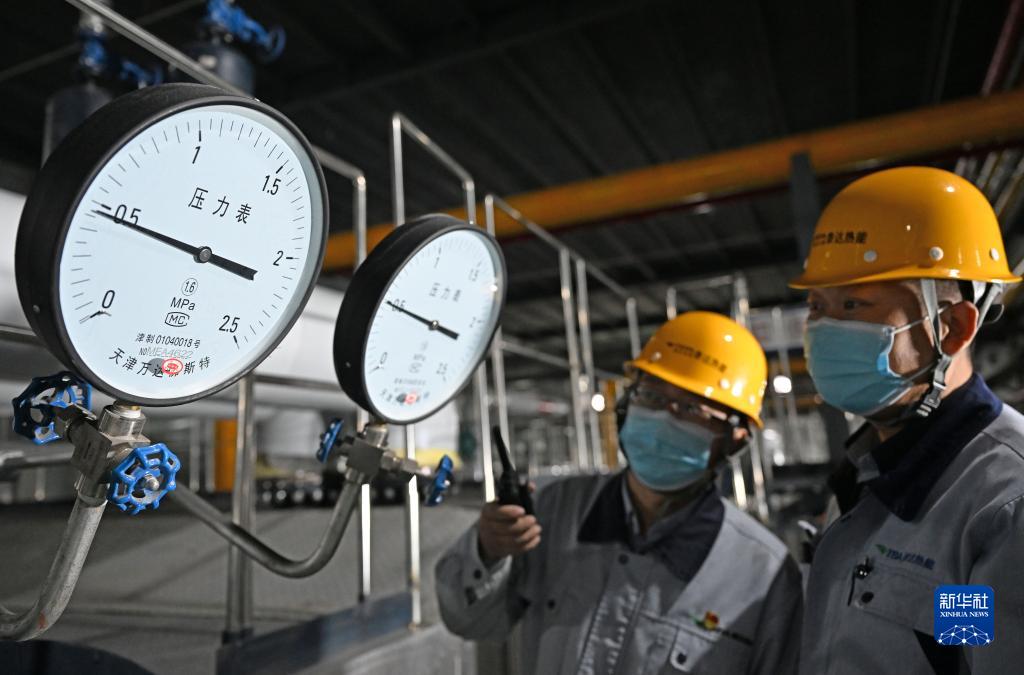 11月1日,在天津泰達熱電能源管理有限公司熱源一廠(chǎng),工作人員查看燃氣鍋爐儀表數據。