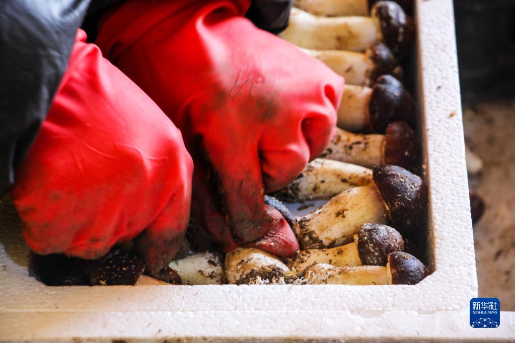 11月2日,在內蒙古通遼市科爾沁區慶和鎮火犁村,工作人員分揀包裝赤松茸。
