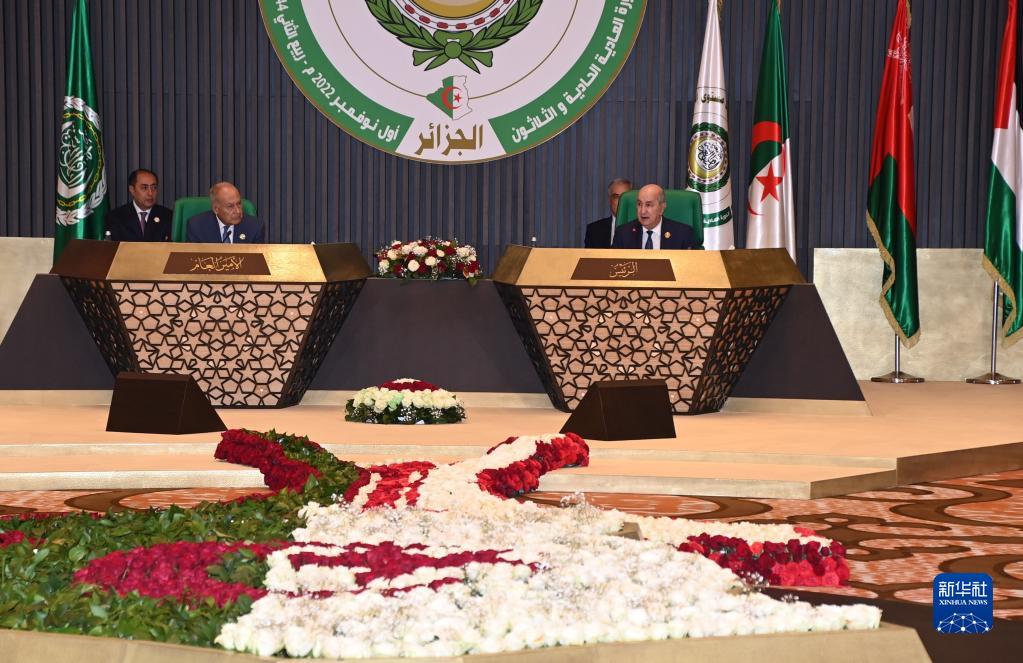 11月1日,阿爾及利亞總統特本(右)與阿盟秘書(shū)長(cháng)蓋特在阿爾及利亞首都阿爾及爾出席第31屆阿拉伯國家聯(lián)盟首腦理事會(huì )會(huì )議。