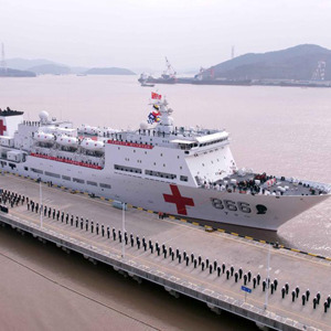 11月2日,執行“和諧使命-2022”任務(wù)的中國海軍“和平方舟”號醫院船從浙江舟山某軍港解纜起航。這是歡送儀式現場(chǎng)(無(wú)人機照片)。