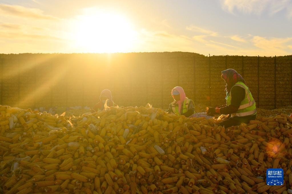 農民在吉林省公主嶺市環(huán)嶺街道土城子村志和農機服務(wù)專(zhuān)業(yè)合作社內分揀收獲的玉米,準備進(jìn)行下一步的儲存工作(11月1日攝)。