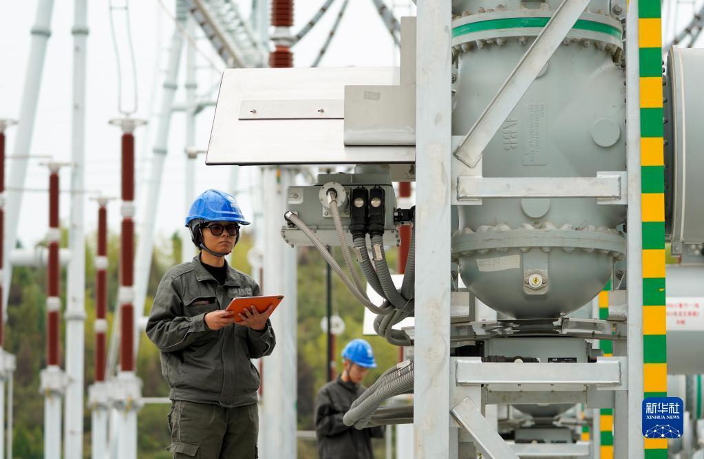 11月4日,國網(wǎng)重慶市電力公司的工作人員在投運前巡視變電站。