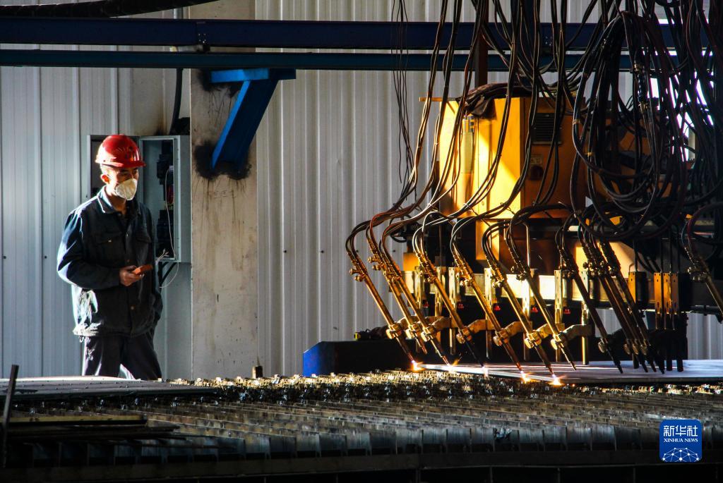 11月2日,在內蒙古通遼市龍馬新能源裝備制造產(chǎn)業(yè)園,工人在生產(chǎn)線(xiàn)上工作。