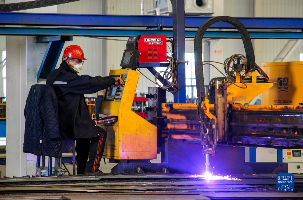 11月2日,在內蒙古通遼市龍馬新能源裝備制造產(chǎn)業(yè)園,工人在生產(chǎn)線(xiàn)上工作。