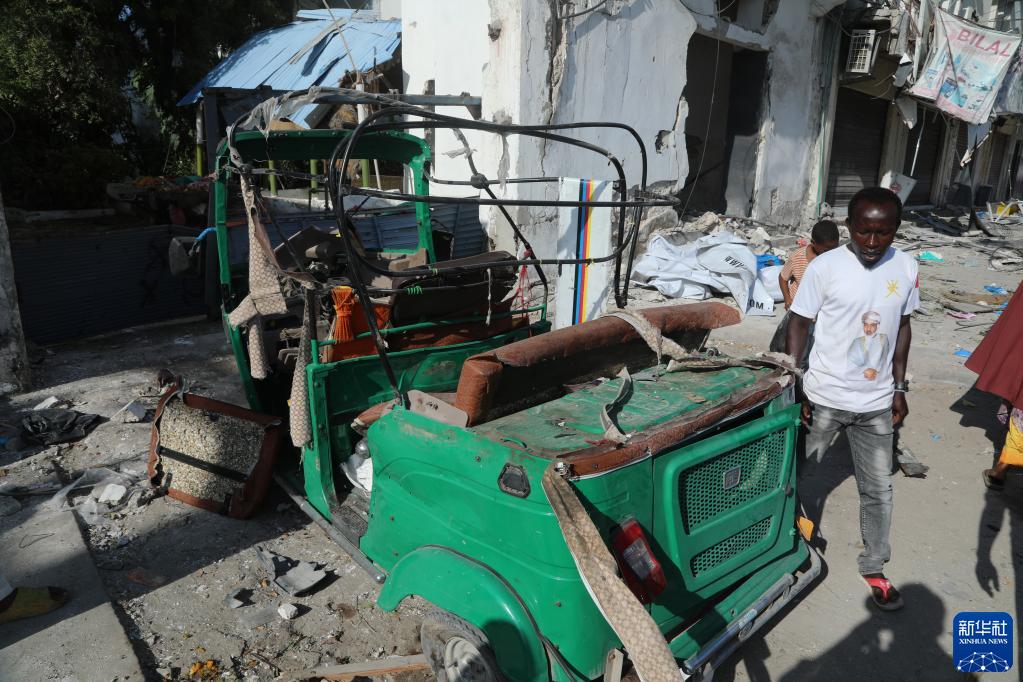 10月30日,在索馬里首都摩加迪沙,當地居民查看爆炸現場(chǎng)。