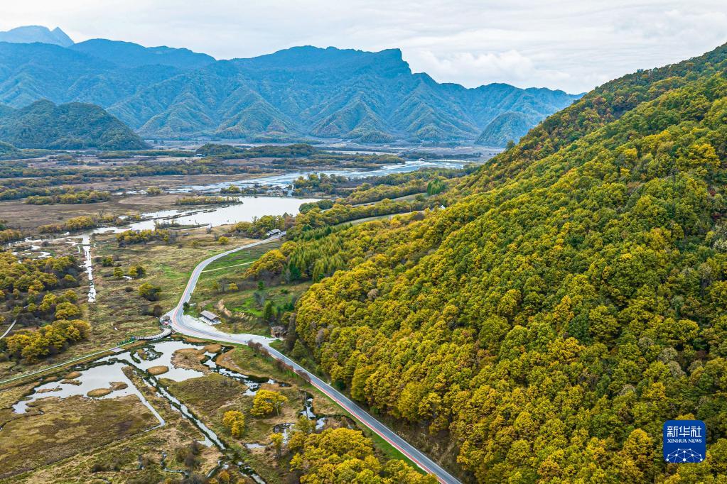 10月15日拍攝的神農架大九湖國家濕地公園一景(無(wú)人機照片)。