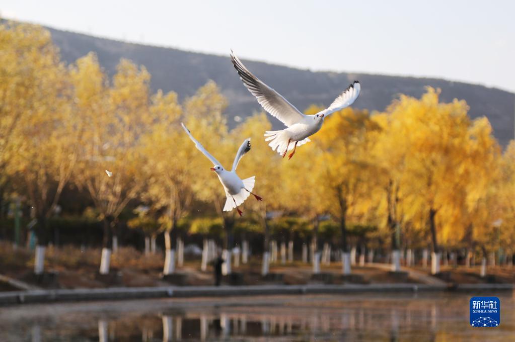 11月4日,在甘肅省定西市安定區一處公園,鳥(niǎo)兒在飛舞覓食。 新華社發(fā)(王克賢 攝)