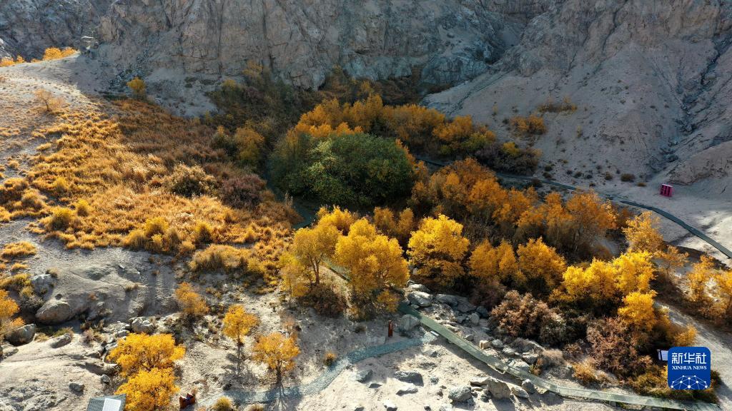 這是10月30日在甘肅省敦煌市懸泉置遺址懸泉谷內拍攝的秋景(無(wú)人機照片)。 新華社發(fā)(張曉亮 攝)