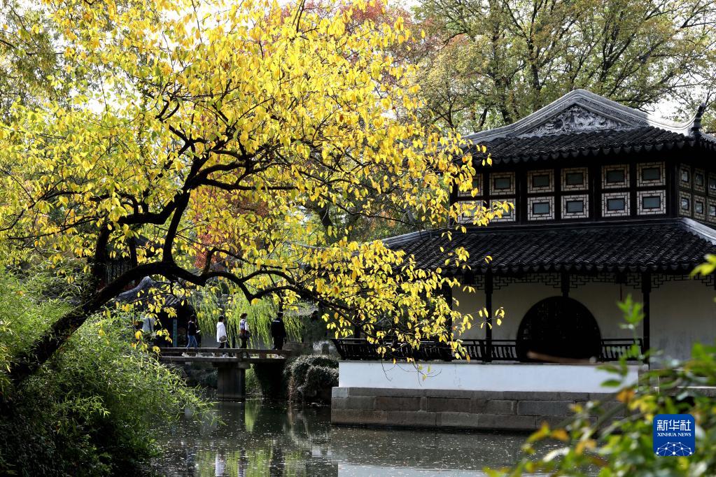11月4日,游客在江蘇省蘇州市拙政園內賞秋。 新華社發(fā)(杭興微 攝)