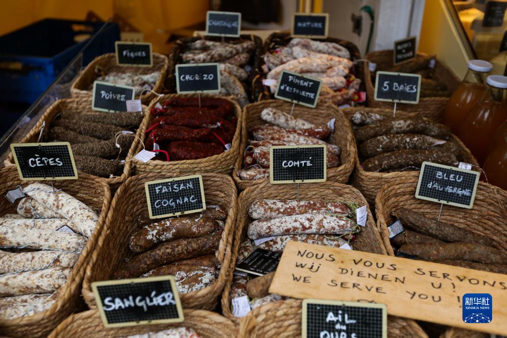 11月4日在比利時(shí)布魯塞爾一市場(chǎng)拍攝的各類(lèi)香腸。
