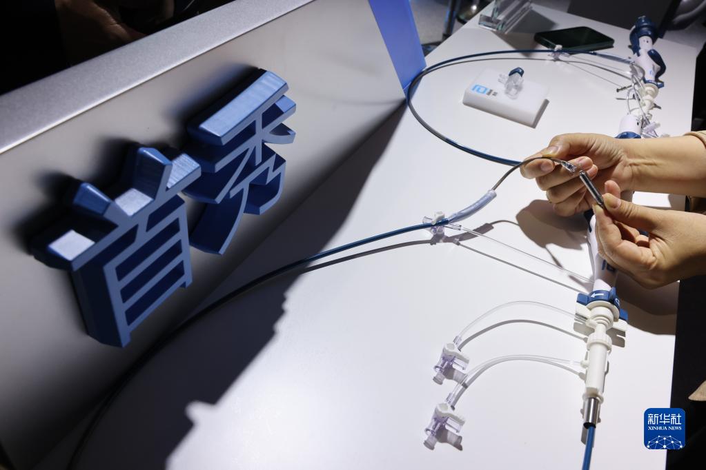 11月5日,在第五屆進(jìn)博會(huì )醫療器械及醫藥保健展區,工作人員在演示一款無(wú)導線(xiàn)心臟起搏器。