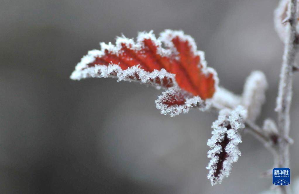 11月2日,在云南省迪慶藏族自治州香格里拉市建塘鎮,植物葉子上結了一層霜。