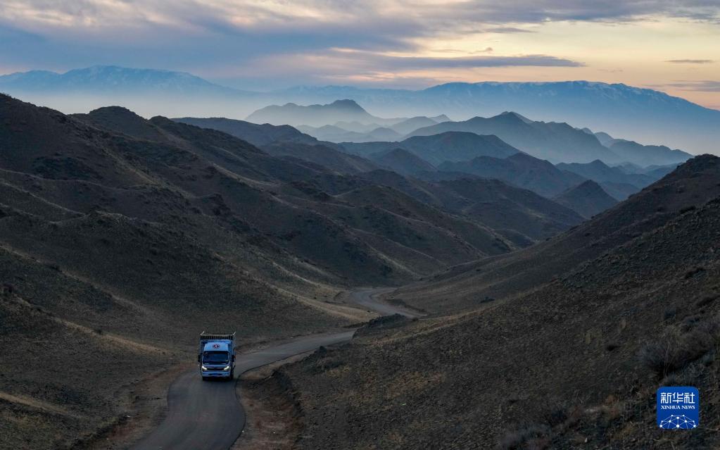 新疆裕民縣牧民開(kāi)車(chē)載著(zhù)牲畜轉往巴爾魯克山冬季牧場(chǎng)(11月4日攝)。