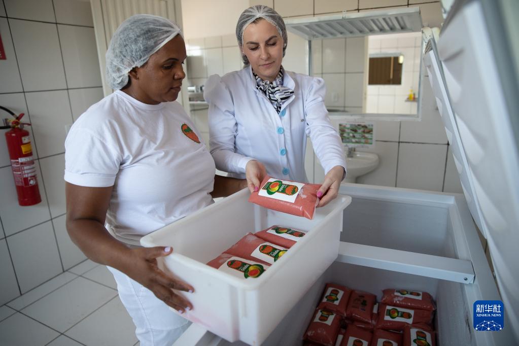 10月4日,在巴西托坎廷斯州馬利亞迪尼亞,食品工程學(xué)家格拉謝拉·帕盧多(右)和工人一起工作。