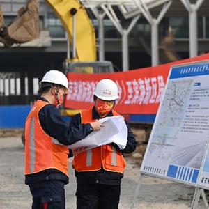 11月6日,工作人員在天津市濱海新區濱海西站施工現場(chǎng)核對圖紙。